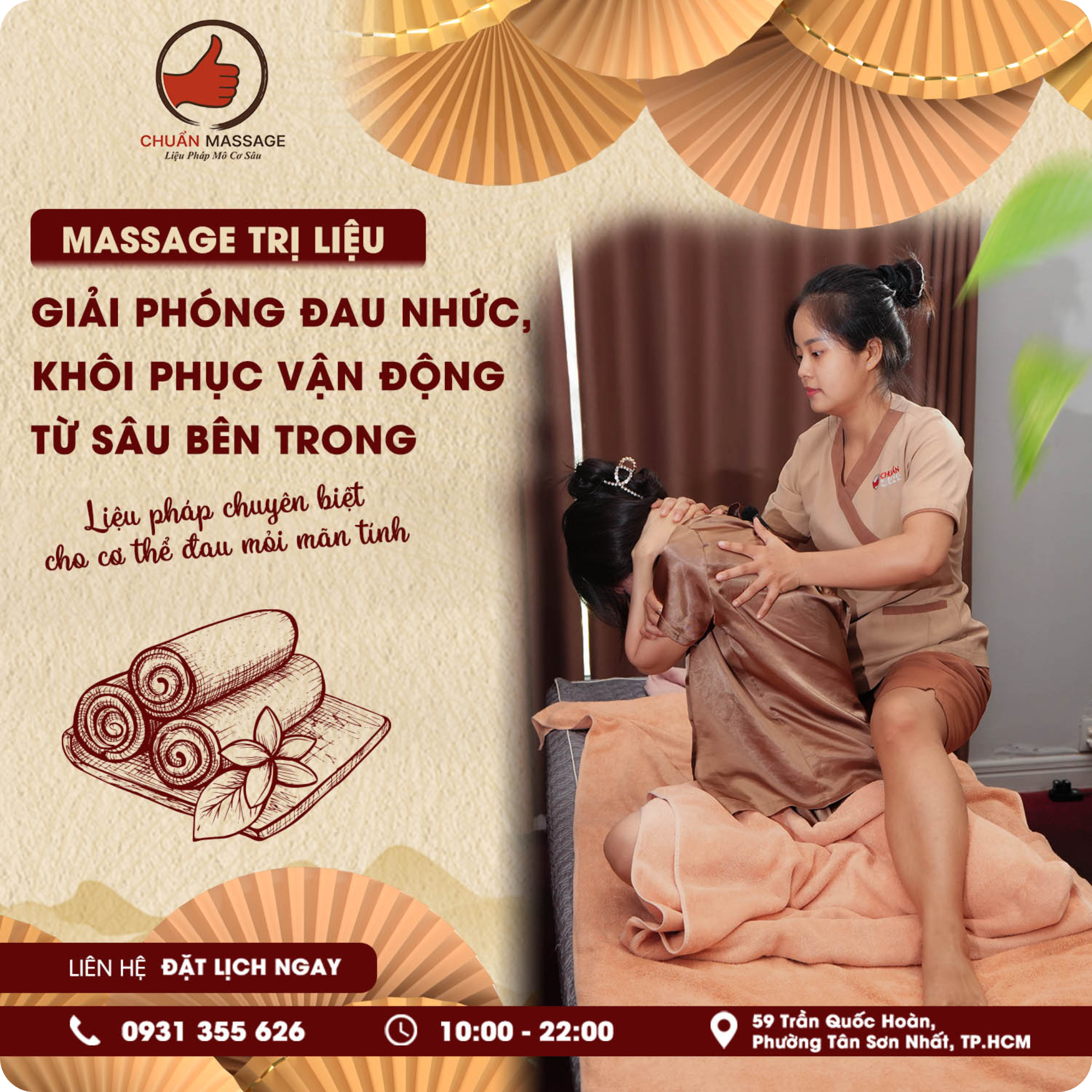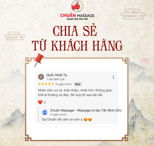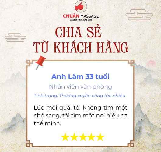 Chuẩn Massage là đơn vị trị liệu uy tín chuyên ứng dụng liệu pháp giải phóng mô cơ sâu, tập trung xử lý tận gốc các vùng căng cứng, đau nhức và tắc nghẽn năng lượng do stress, sai tư thế và áp lực công việc. Thông qua kỹ thuật massage chuyên sâu kết hợp bấm huyệt và đả thông kinh lạc, Chuẩn Massage giúp cơ thể phục hồi linh hoạt, cải thiện tuần hoàn, giải tỏa căng thẳng thần kinh và khôi phục trạng thái cân bằng tự nhiên một cách bền vững.