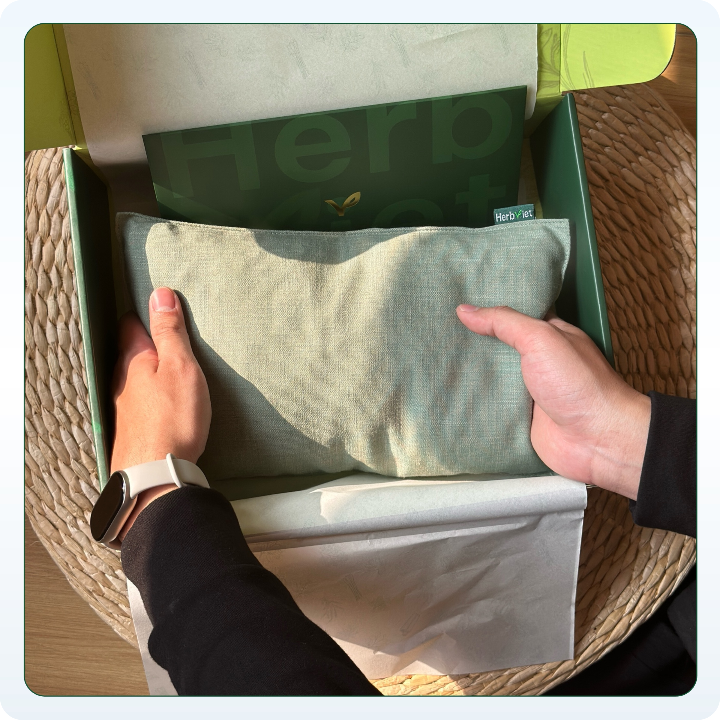 Hơi ấm thư giãn từ gối chườm thảo dược